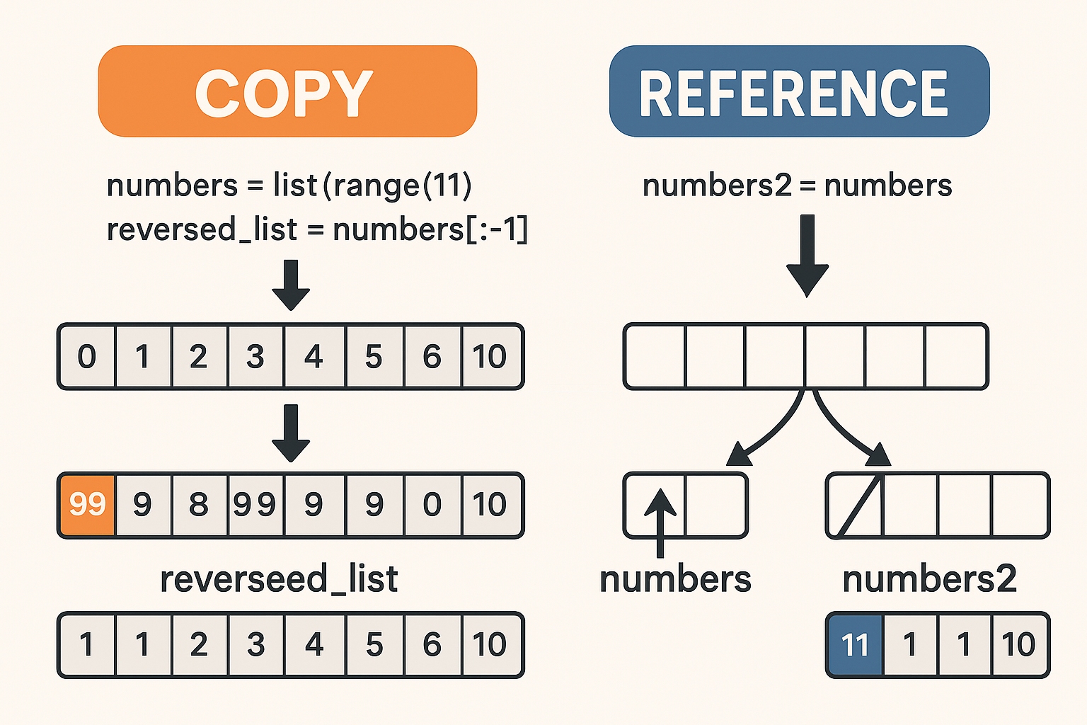 | 예시 | reversed_list = numbers[::-1] | numbers2 = numbers |